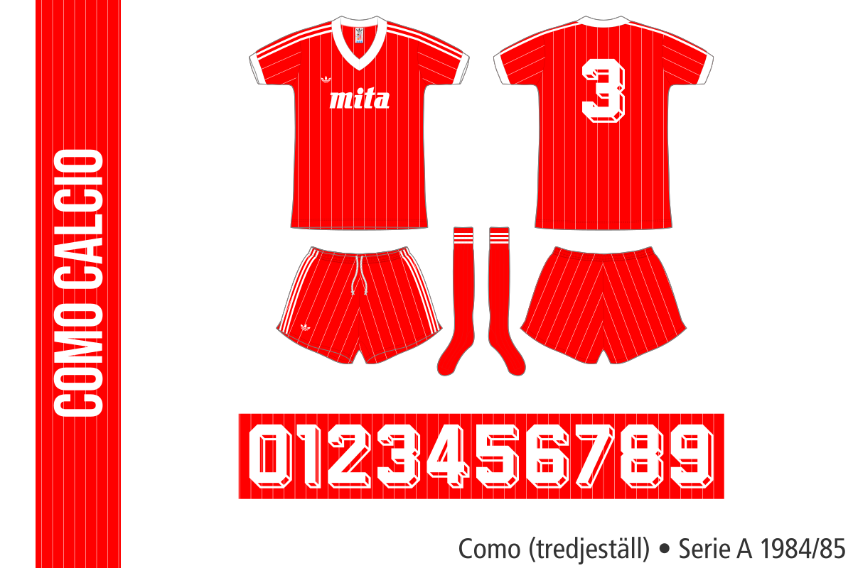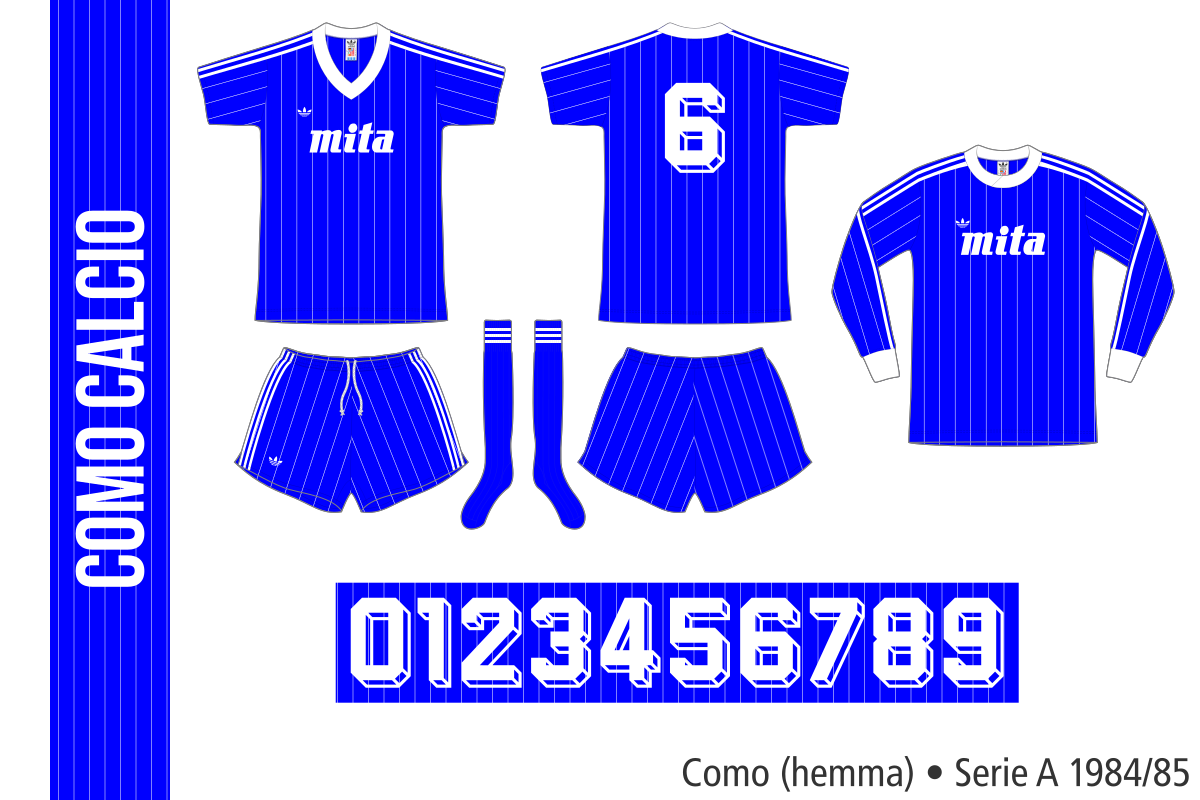 Superga levererade tröjorna till Como 1980/81. Hemmastället gick helt i blått. Den långärmade varianten hade rund hals medan den kortärmade hade krage. Det fanns två reservtröjor, en vit och en röd. Den vita använde man tillsammans med blå byxor och vita strumpor. Borta mot Napoli spelade Como i röda tröjor, vita byxor och röda strumpor.