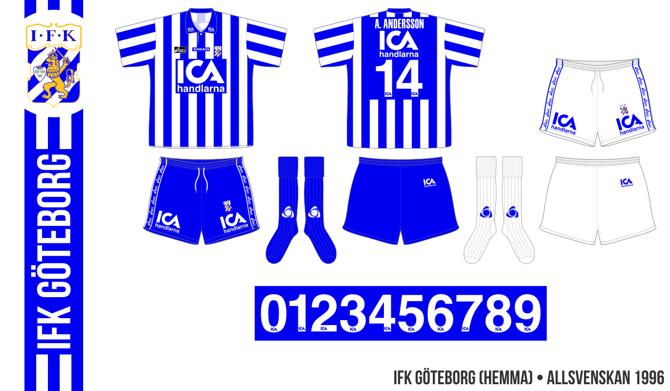 Adidas levererade matchställen till IFK Göteborg 1991. Hemmastället var i stort sett likadant som tidigare, men Folksam ersatte SKF som sponsor på höger bröst. Man placerade också ICA-logotypen på kragen. I en del matcher saknades klubbmärket på tröjorna och på shortsen stod det nu ”ICA handlarna” istället för bara ICA. Striktare reklamregler gjorde att man i Europacupen endast hade en mindre ICA-logotyp på tröjorna.